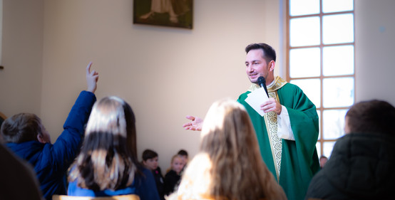 Február elsővasárnapján különös fény ragyogta be közösségünket. Nem a gyertyáké volt ez a fény, nem is csupán a templom csendjéé – hanem harminchét gyermek szívének lassan kibomló ragyogása. Ők álltak előttünk, kissé bátortalanul, mégis valami titokzatos méltósággal: az elsőáldozásra készülők, akik lelkükben már készülnek a Jézussal való találkozásukra.